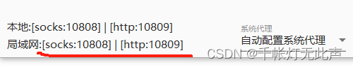 底部看到的,局域网对应的协议(socks/http)和端口号(10808/10809),